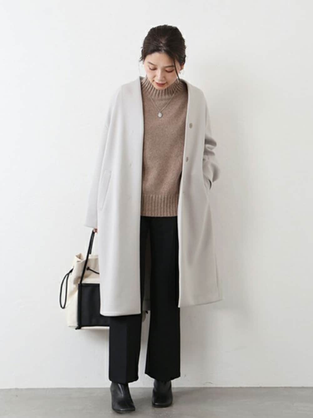 ondaのその他アウター「ダンボールニットVカラーコート◆」を使ったコーディネート