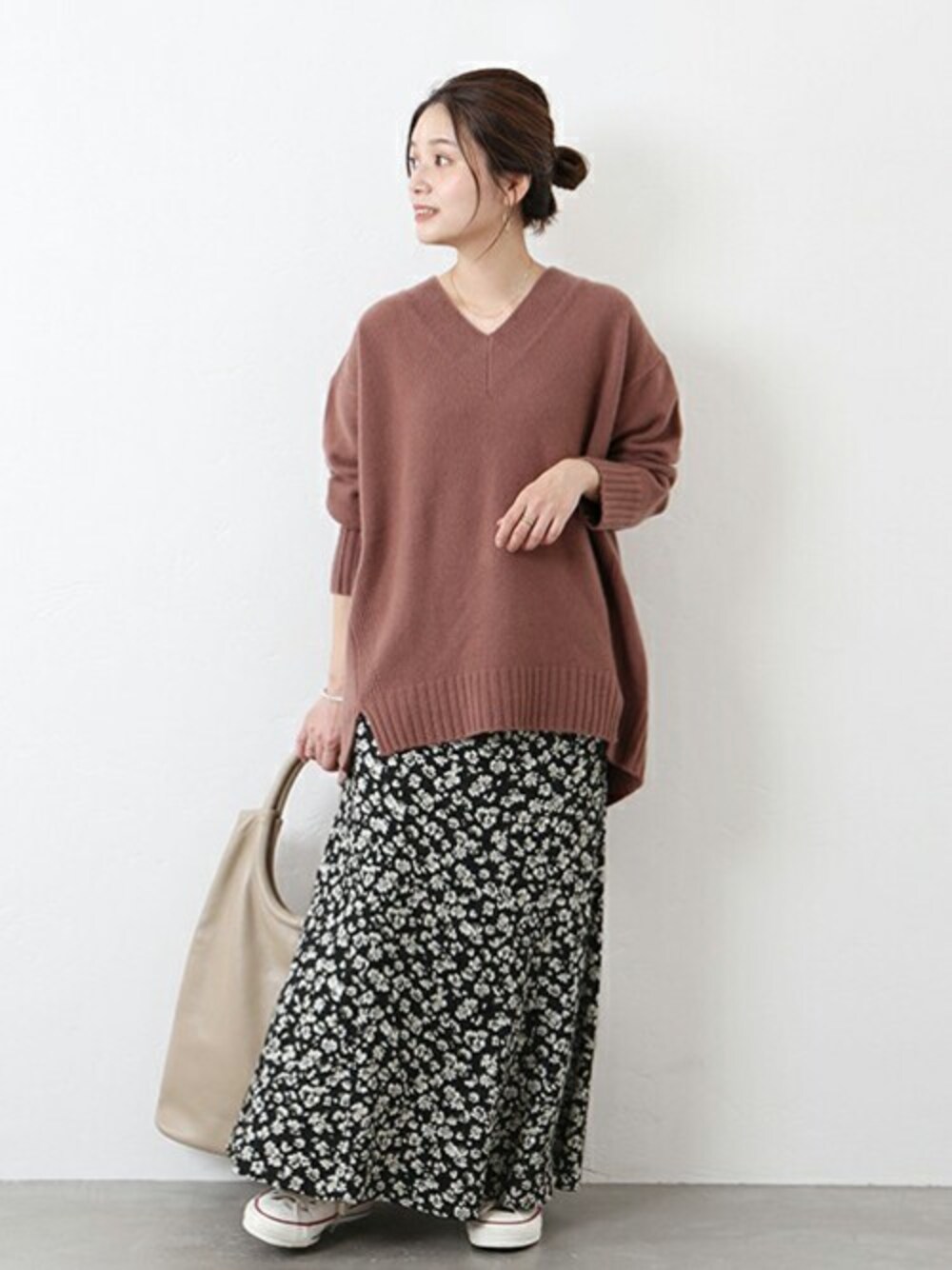 ondaのスカート「ミドルフラワープリントスカート◆」を使ったコーディネート