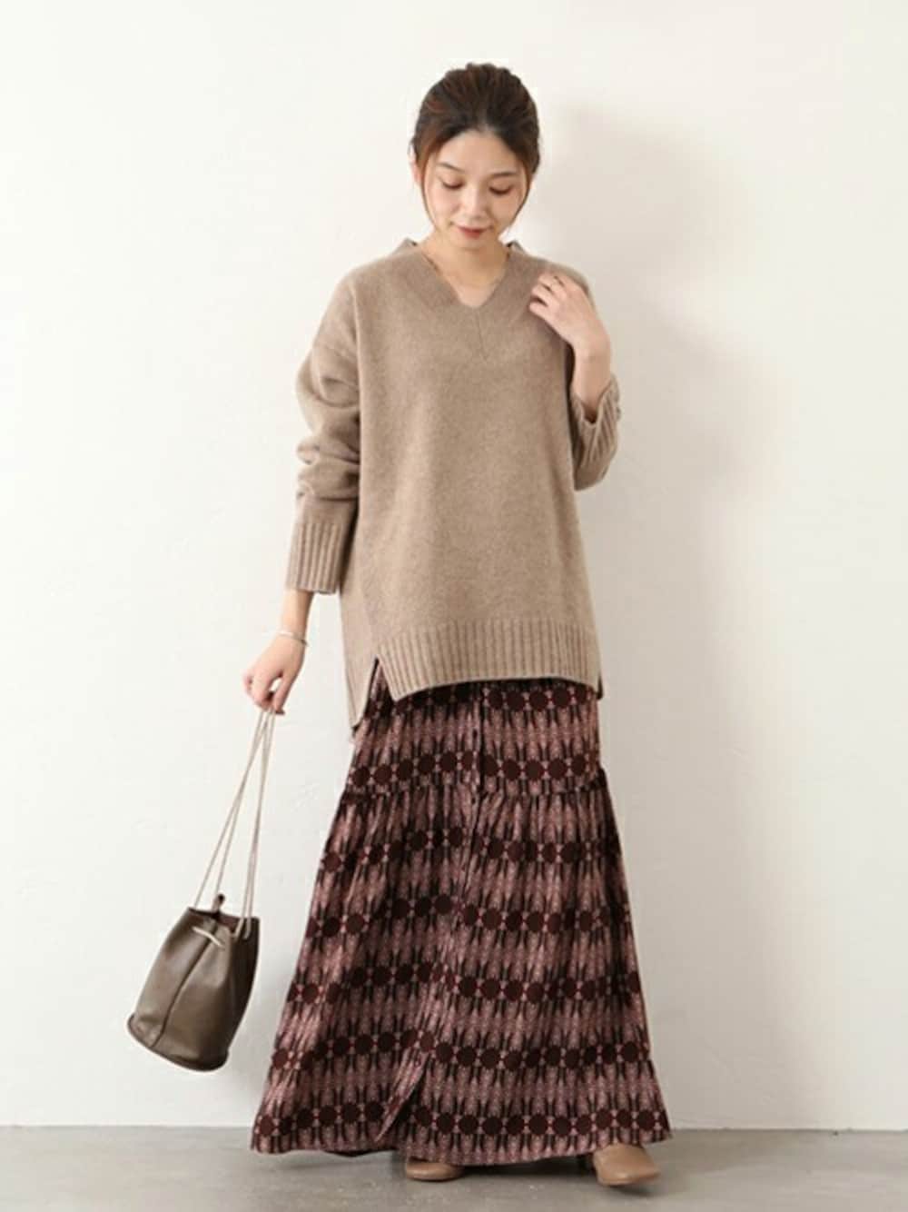 ondaのワンピース「エスニックプリント バンドカラー2WAYワンピース」を使ったコーディネート