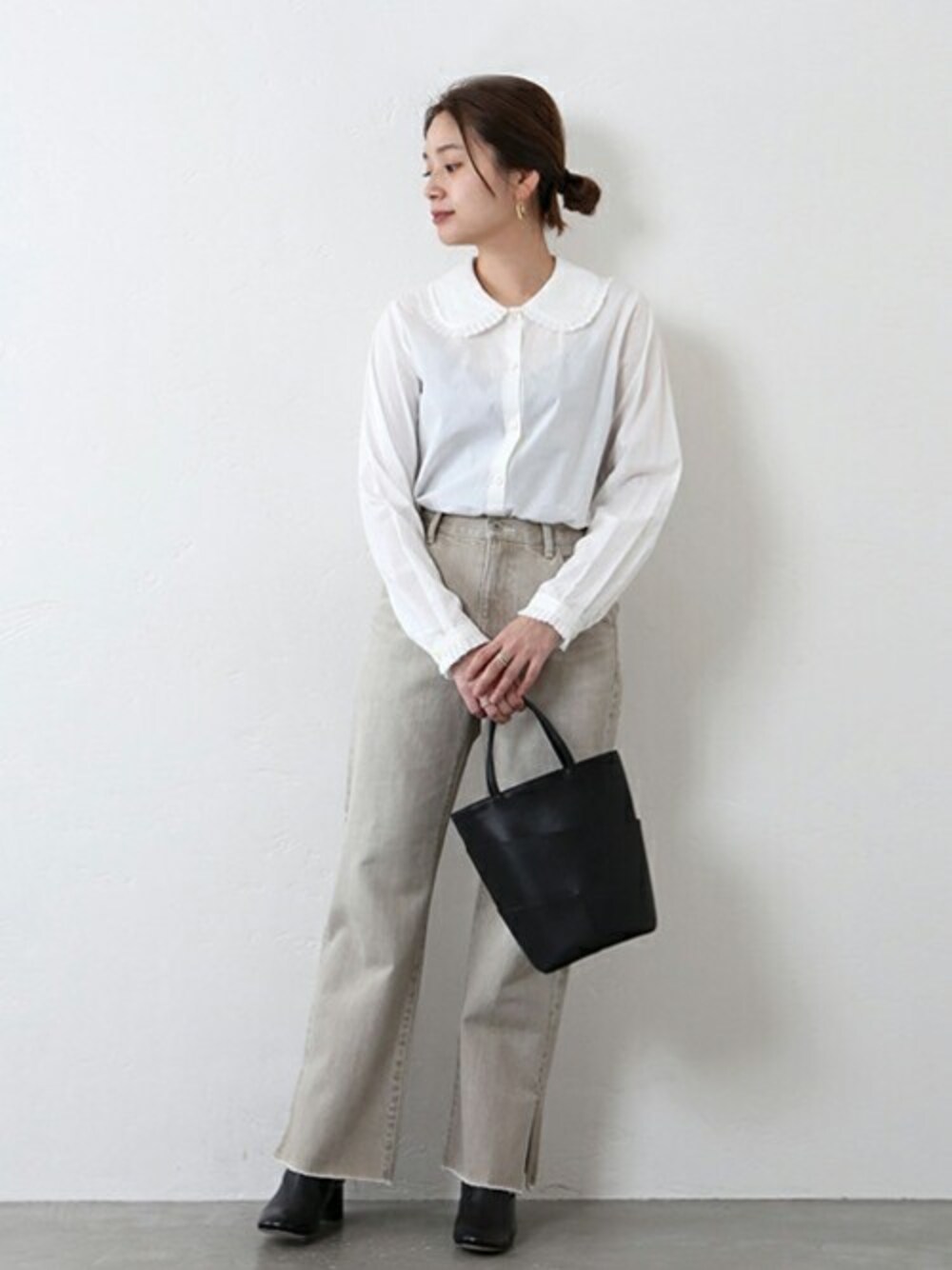 ■ローンフリルブラウス ◆人気のローンフリルブラウスが再登場! ※旧品番:20051400905030、20051400904040と同一商品です。 ※若干の仕様変更がある場合もございます。 トレンド感のあるフリル襟のブラウス。 フリルがついた甘いディティールが今年の気分。 大きめな襟が大人の方にもよく合うデザイン◎ スウェットやニットと合わせてちらりとのぞかせるだけでもぐっと旬のスタイルに仕上がります。 サイズ感:すっきりしたサイズ感 素材感:コットン素材 着心地:コットンなので肌触りは良いです。レイヤードに活躍して、洗濯もできるので襟元の汚れも気にせず使えるのが◎