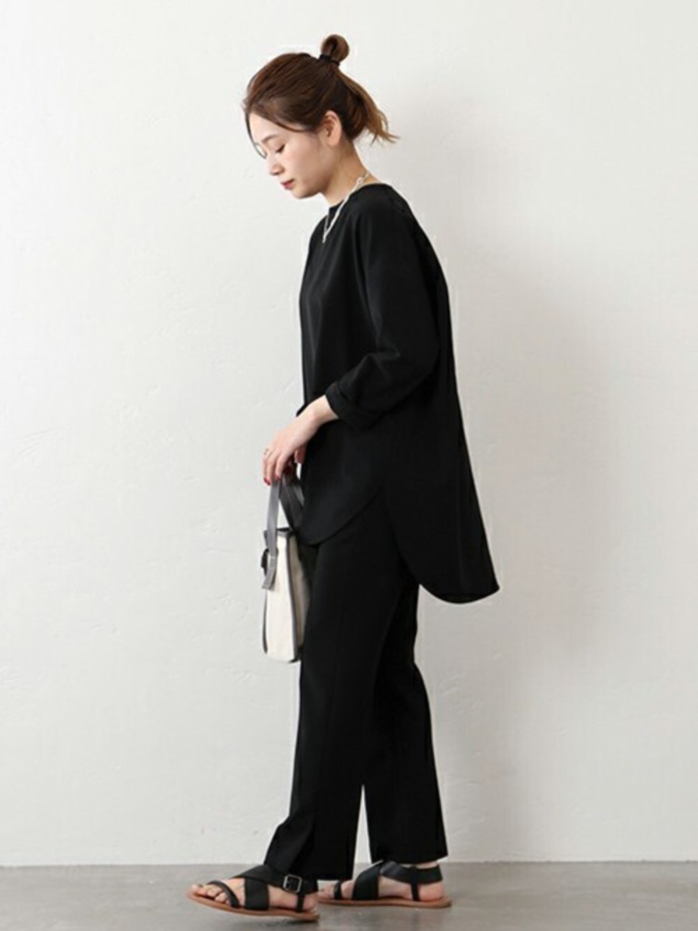 ■Wクロス シャツテールブラウス クリーンなイメージが魅力の大人の女性におすすめなブラウス。 全体的にきれいめでシンプルな見た目ながら、程よく小さめの衿ぐり、少しボリュームのある袖口、裾のシャツテールなどが上品かつモード感を醸し出してくれる1枚です。 素材は体のラインを拾いづらい中肉のポリエステル素材。マットな質感で高級感もあり、シワにもなりづらい嬉しい素材です。 シリーズでそろえてセットUPも◎ ※同シリーズで下記品番もあります ・Wクロスシャツテールワンピース(品番:21040400301010) ・Wクロスサイドベントパンツ(品番:21030400300010) サイズ感:すっきりしてみえます。 素材感:透け感がなく一枚で着れるのが◎ 着心地:ストレッチも効いていて楽に着れます。見た目はきれいに見え、一枚で様になります。
