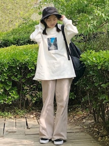 ■PLポンチスラックスライクパンツ イージーケアなポリエステル素材のポンチを使った、とにかく便利な美脚ボトムが登場◎ ほんのりフレアで脚を美しく見せてくれ、ウエストゴムのカットソーボトムなので履き心地も良く、履いていてストレスがありません。カットソーパンツというとリブパンツが定番ですが、こちらはリブ目がなくよりクリーンに見え、体のラインも拾いづらい嬉しいポイントが満載のパンツ。ポリエステル素材の特性上、美脚効果のあるセンタープレスが洗濯しても消えないのが嬉しいポイントです◎ サイズ感:足のラインを拾わずきれいなシルエットで履けます。 素材感:ポンチ素材で程よいカジュアルさのある素材。ONOFFで使える素材です。 着心地:ストレッチが効いていてウエストのしめつけもなくリラックスして履けます。