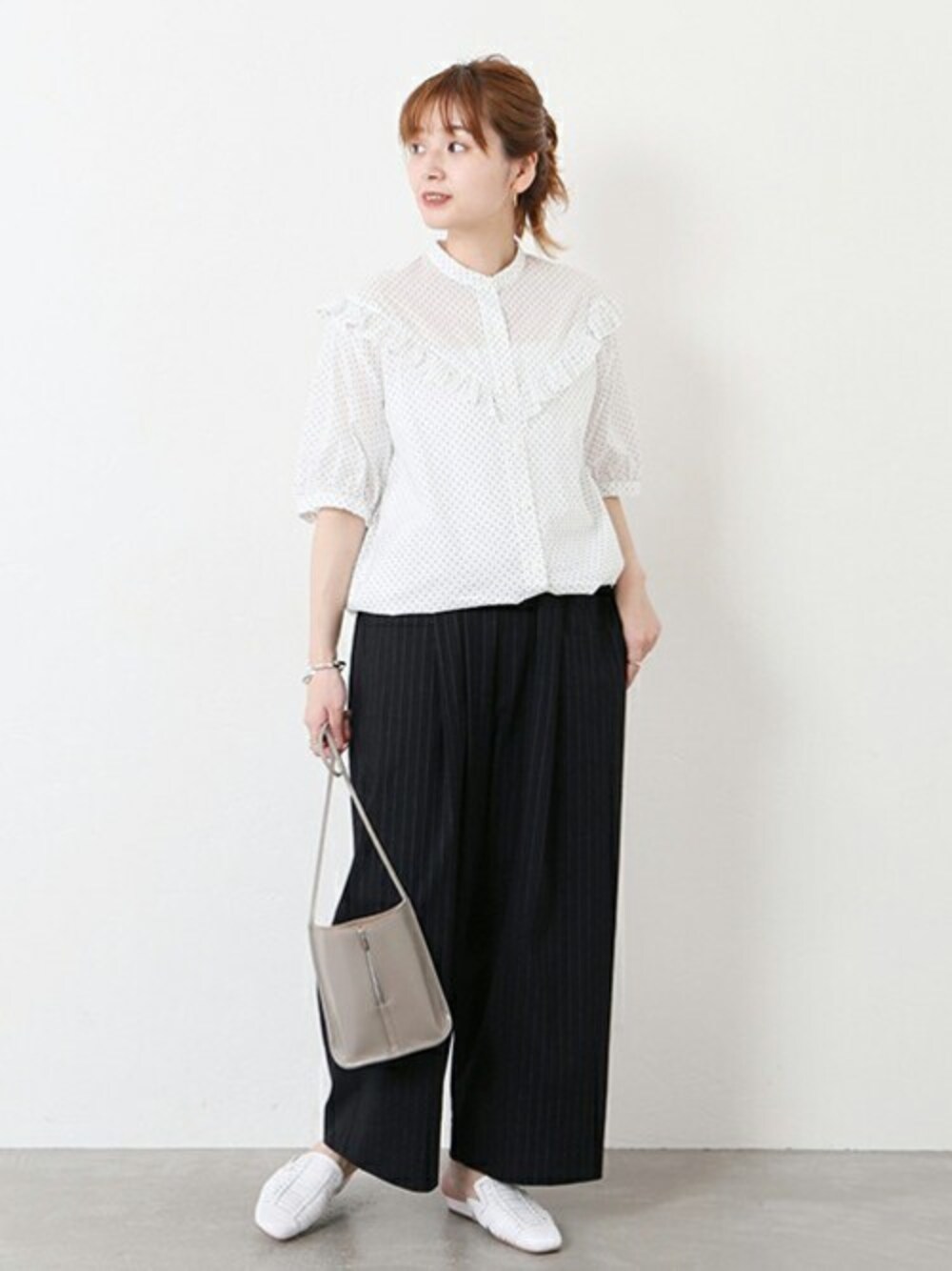 ondaのシャツ/ブラウス「ショルダーフリルハーフスリーブブラウス◆」を使ったコーディネート