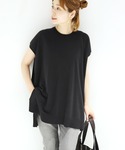 ■ハイツイストコットンノースリーブチュニック 夏にさわやかに着られるニットのチュニックが登場。 さらりとした手触りのクリーンな薄手のニット素材。ゆったりとした身幅と丈感、二の腕を程よく隠してくれる袖丈が気になる体のラインをしっかりカバーしてくれます。 Tシャツよりきれい見えで上品な印象に。 細身のパンツはもちろん、ワイドでも少し前の裾を入れたりするとバランスよく着こなせます。 サイズ感:ゆったりしたサイズ感です。 素材感:落ち感があり、さらっとしています。 着心地:着丈が長めなので、すっきりしたボトムとも相性抜群です。