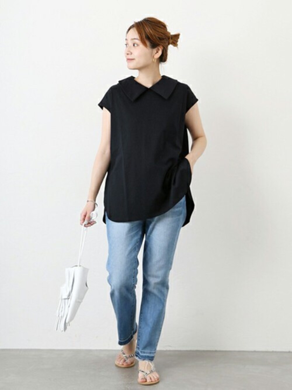 ■《WEB限定》オーガニックコットンポンチプルオーバー 大人の方にも着て頂きやすいサイズ感が絶妙な襟付きのノースリーブカットソー。 柔らかな着心地の良いポンチ素材を使用して、デイリーユースで動きやすさも兼ね備えたデザインアイテム◎ 全体的にゆとりあるシルエットがかっちりしすぎず程よく抜け感をプラス。着丈もきちんとあるので気になるヒップをカバーしてすっきりと着て頂けます! カットソーなのに上品なデザインなのでカジュアルなボトムスと合わせても品よくまとまります。 同シリーズのパンツ品番:21070400820020 オーガニックコットンポンチパンツとセットアップでの着こなしもおすすめです。 サイズ感:身体のラインを拾わないサイズ感です。 素材感:伸縮性がややあります。 着心地:大きすぎないサイズ感なので、サロペットなどのインナーとしても着て頂けます。
