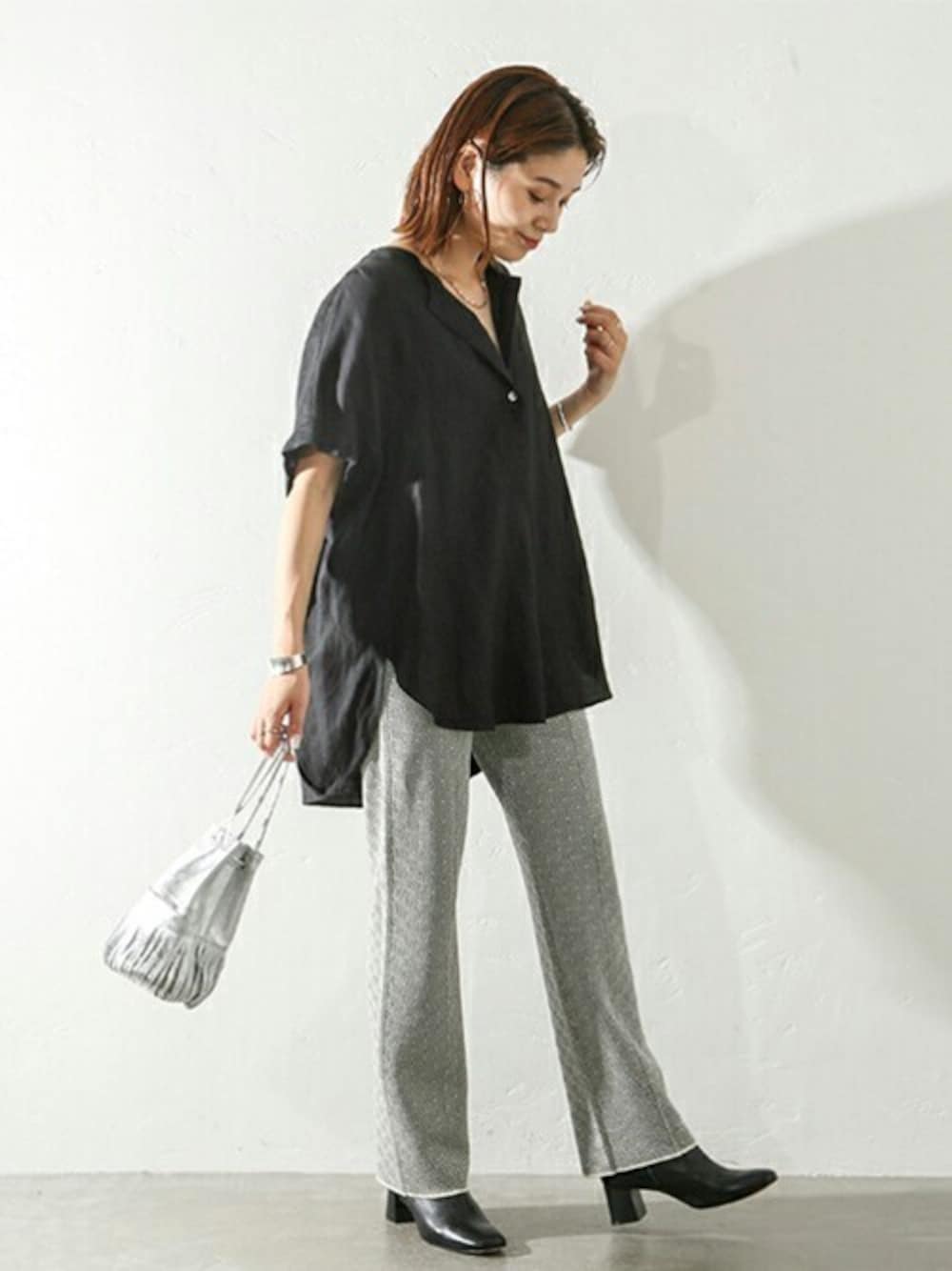 ondaのシャツ/ブラウス「《追加》レーヨン麻ノーカラーブラウス◆3」を使ったコーディネート