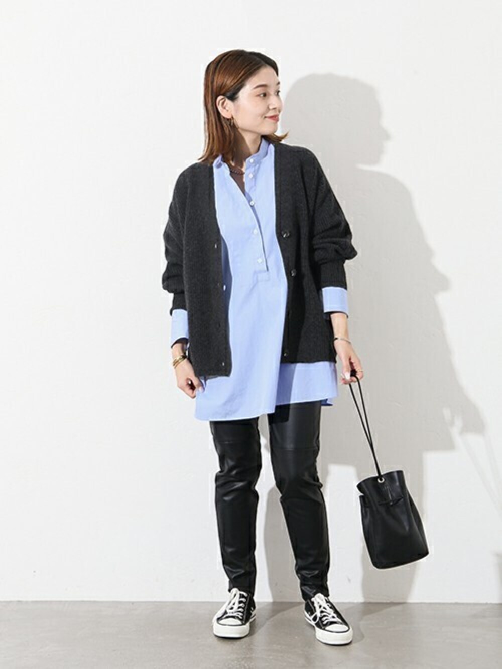 ■ウォッシャブルウールキリカエカーディガン 朝晩冷える秋のお洒落におすすめなカーディガン。 ちょうどいい肉感のミドルゲージの畦編み仕様です。 今回はシャツ×パンツスタイルにカーディガンを合わせて大人カジュアルな印象に。 サイズ感:アームも身頃もゆったりしたサイズ感です。 素材感:中肉のニットで暖かみのある素材です。チクチク感はありません。 着心地:カーディガンなので、Tシャツの上にも羽織れて万能に使って頂けます。