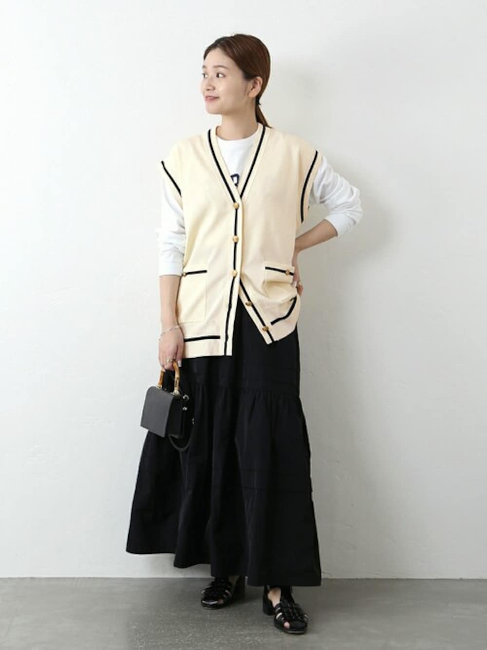 PREPPYベスト◆ さらっとしたコットン混の総針ベスト! SPORTYなラインとメタルボタンがポイント。 着心地抜群で着るだけで決まるお洒落ベストなので、カットソーに合わせたり、 1枚で夏に着るのも素敵です。 今年トレンドのハリ感のあるスカートに合わせてスタイリング、 下のボタンを少し開けると見た目が良くスッキリします。 ●骨格/ストレート ●パーソナルカラー/イエベ春 ●普段サイズ/М 着用期間:春・夏・秋 サイズ感:程よくゆとりがあります。 素材感:さらっとしたコットン混素材。 着心地:着丈が長めなので、細身のパンツやスカートとの相性も抜群です。 ※ あくまでも個人の感想です。 Instagram➤onkanaa こちらもフォローしてみてください◎