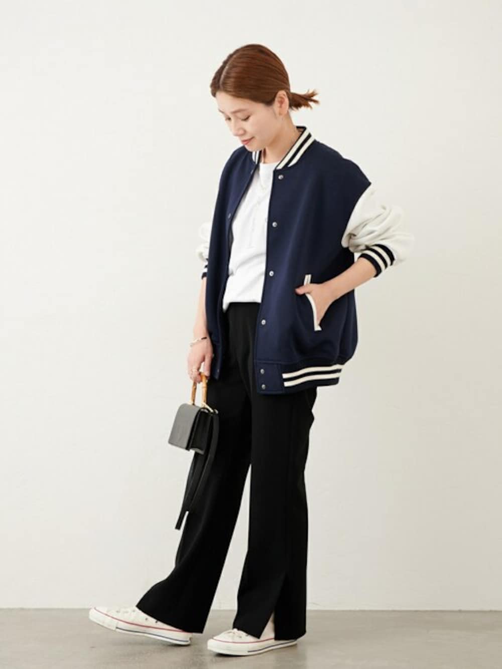 ダンボールスタジャン カットソー素材のお気軽なスタジャンが登場! リラックス感のある素材なので着心地も抜群です。 人気のダブルクロススリムパンツでスタイリング。 ●骨格/ストレート ●パーソナルカラー/イエベ春 ●普段サイズ/М サイズ感:ゆったりとしたサイズ感です。 素材感:凹凸の無い素材でふっくらした素材感です。柔らかいです。 着心地:重量感はややありますが、着ると問題ないです。 パーカーやニットなどでも着用できるので、春はもちろん、秋にも◎ ※ あくまでも個人の感想です。 Instagram➤onkanaa こちらもフォローしてみてください◎