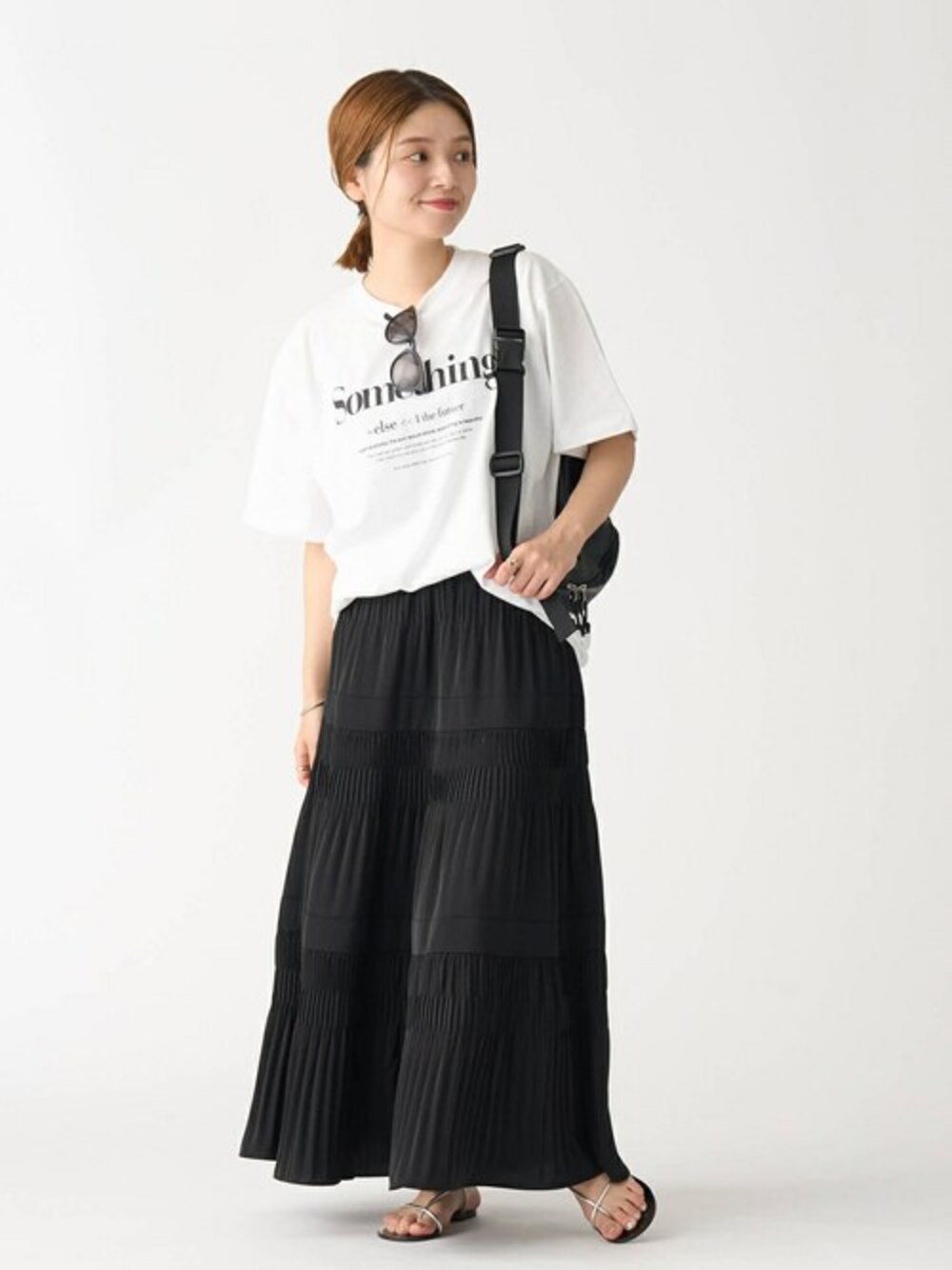 身長158cm/30代前半 普段サイズ:アウター38/トップスM/ボトム38/ワンピース38 パーソナルカラー:イエベ春 骨格:ストレート Instagram:onkanaa ----------------------------------------------------------------- 【商品名ミニプリーツティアードスカート着用サイズ:38 大人フェミニンなプリーツティアードスカート。 人気で追加予約開始しました! 落ち感のある素材感でスッキリと着用して頂けます。 綺麗めはもちろん、カジュアルな着こなしとの相性も抜群です。 ----------------------------------------------------------------- 【サイズ感】 ウエストはゴム仕様でゆったりとしています。 38着用でゴムなので、楽に着用でき158㎝で、マキシ丈で着用出来ました。 フレアなので、身体のシルエットは出にくいです。 【素材感】 やや光沢があります。 落ち感のある素材で上品な素材です。 【お洗濯について】手洗い可能 ※あくまでも個人の感想です。