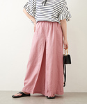 身長158cm/30代前半 普段サイズ:アウター38/トップスM/ボトム38/ワンピース38 パーソナルカラー:イエベ春 骨格:ストレート Instagram:onkanaa ----------------------------------------------------------------- 【商品名】リネンタックキュロット 着用サイズ:38 名品のリネンタックキュロットにピンクが登場◎ スカートのようなパンツで足さばきもとても良いです。 リネンなので、これからの季節に涼しく着用出来ます。 ----------------------------------------------------------------- 【サイズ感】 ウエストはゴム仕様でやや大きめ。ウエストの内側部分に調節可能な紐付き。 ワイドシルエットで脚のラインは出にくいです。 ゆったりとしたサイズ感なので38でやや緩かったです。 マキシ丈で着用出来ました。 【素材感】 ハリは無く柔らかめの手触り。ソフトな肌触りで、着心地の良い素材感です。 【お洗濯について】手洗い可能 ※あくまでも個人の感想です。