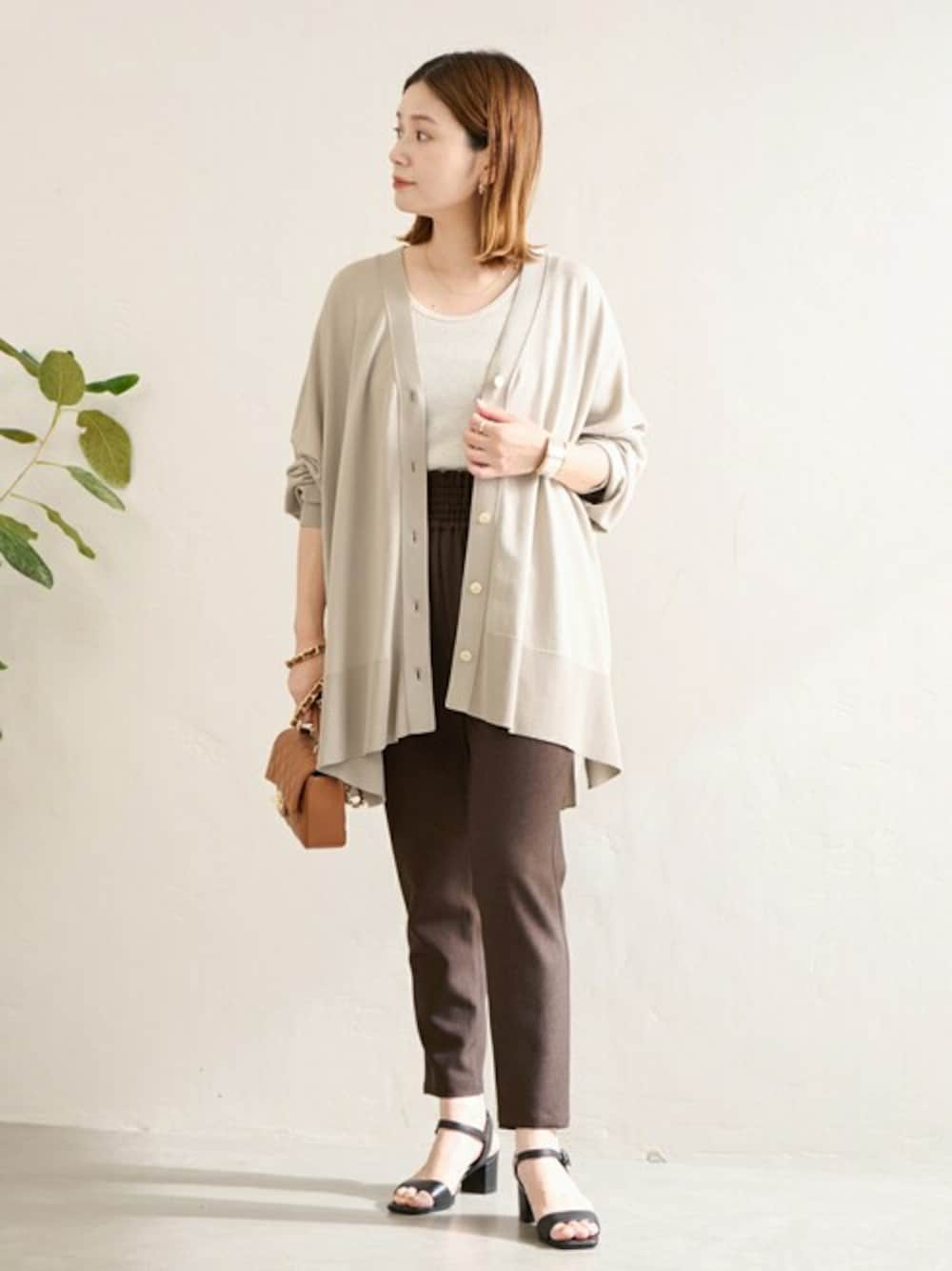 身長158cm/30代前半 普段サイズ:アウター38/トップスM/ボトム38/ワンピース38 パーソナルカラー:イエベ春 骨格:ストレート Instagram:onkanaa ----------------------------------------------------------------- 【商品名】ハイツイストコットンポンチョカーディガン 着用サイズ:フリー JOURNALSTANDARDの名品カーディガン。 テーパードパンツでスッキリと合わせてみました。 ポンチョ型でゆったりと着用できるので、冷房対策や梅雨時期にぴったりです。 ---------------------------------------------------------------- 【サイズ感】 肩落ちで窮屈感なく着用できます。袖丈は長袖で、ヒップが隠れる着丈でした。 普段М着用で、ゆるさがあるサイズ感で着用出来ました。 【素材感】 ハリは無く柔らかめの手触り。程よい肉感でソフトな肌触りで、着心地の良い素材感です。 【お洗濯について】手洗い可能 ※パンツはこれから販売予定です。 ※あくまでも個人の感想です。