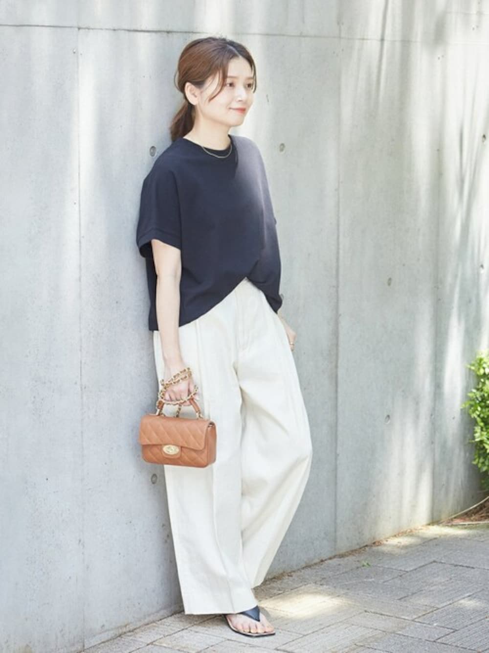 身長158cm/30代前半 普段サイズ:アウター38/トップスM/ボトム38/ワンピース38 パーソナルカラー:イエベ春 骨格:ストレート Instagram:onkanaa ----------------------------------------------------------------- 【商品名】DEPENDインレーフォルムプルオーバー サイズ:フリー サイドに施されたタックがポイントのTシャツ。 シンプルなデザインで色々7な着こなしに合わせて頂けます◎ ワイドパンツに合わせて、前裾だけインしてスタイリング。 ブラックは大人っぽいカラーで魅力です。 ----------------------------------------------------------------- 【サイズ感】 肩落ちで窮屈感なく着用できます。袖丈は肘よりやや上でヒップが隠れる着丈でした。 普段М着用で、ゆるさがあるサイズ感で着用出来ました。ヒップに沿うシルエットで可愛いです。 【素材感】 ハリは無く柔らかめの手触り。程よい肉感でソフトな肌触りで、着心地の良い素材感です。 【お洗濯について】洗濯機洗い(弱) ※あくまでも個人の感想です。