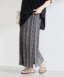 【商品名】ウェーブパターンプリーツスカート 着用サイズ:フリー 程よい光沢感で、上品な雰囲気のウェーブプリントのプリーツスカートです。 穿くだけで着映えする主役級のスカート これからの季節に大活躍する涼しいスカートでした。 大人っぽいニットでスタイリング。 ----------------------------------------------------------------- 【サイズ感】 ウエストはゴム仕様で窮屈感無く着用出来ました。 普段サイズで問題なく着用出来ました。 38着用でちょうど良かったです! 【素材感】 ハリは無く柔らかめの手触り。さらっとした素材感で夏も涼しい素材でした。 【お洗濯について】手洗い可能 ※あくまでも個人の感想です。