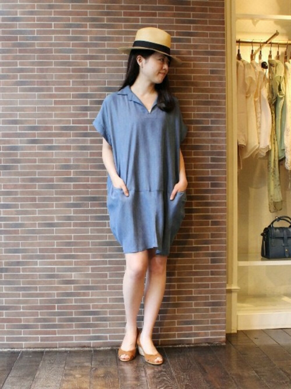 ゆったりとしたボリュームのあるシルエットが可愛らしいワンピース。 光沢感のあるテンセル素材が上品な仕上りに。