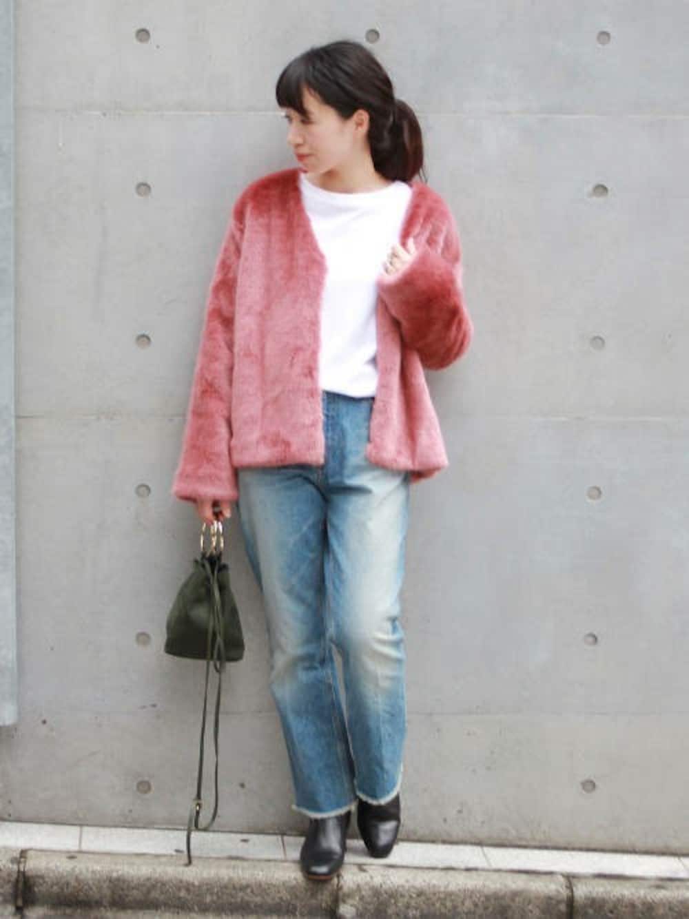 JOURNAL STANDARD 本社スタッフBのカーディガン/ボレロ「ECO FUR カーディガン#」を使ったコーディネート