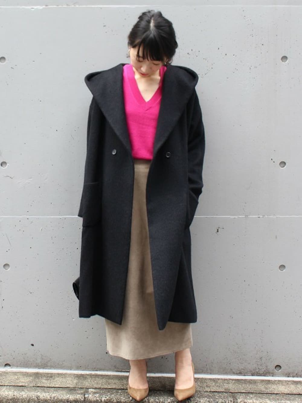 JOURNAL STANDARD 本社スタッフBのその他アウター「アルパカシャギーフードコート#」を使ったコーディネート