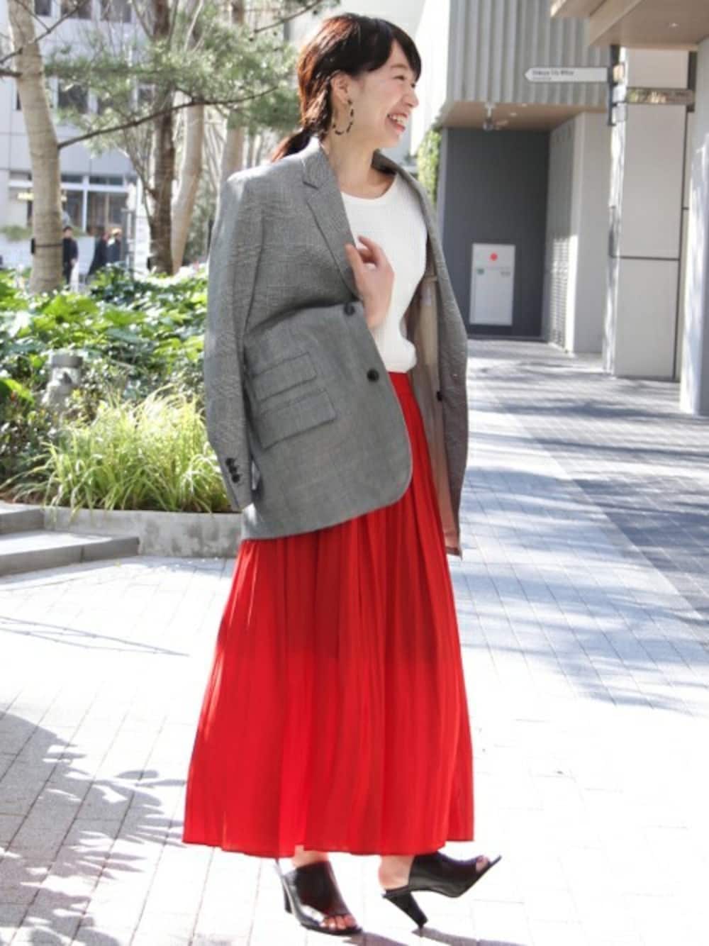 レッドのマキシスカートがコーディネートを一気に華やかに仕上げてくれます◎