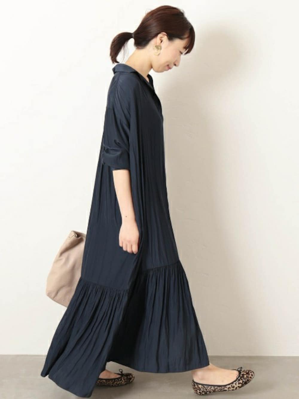 JOURNAL STANDARD 本社スタッフBのワンピース「デシンマキシティアードワンピース◆」を使ったコーディネート
