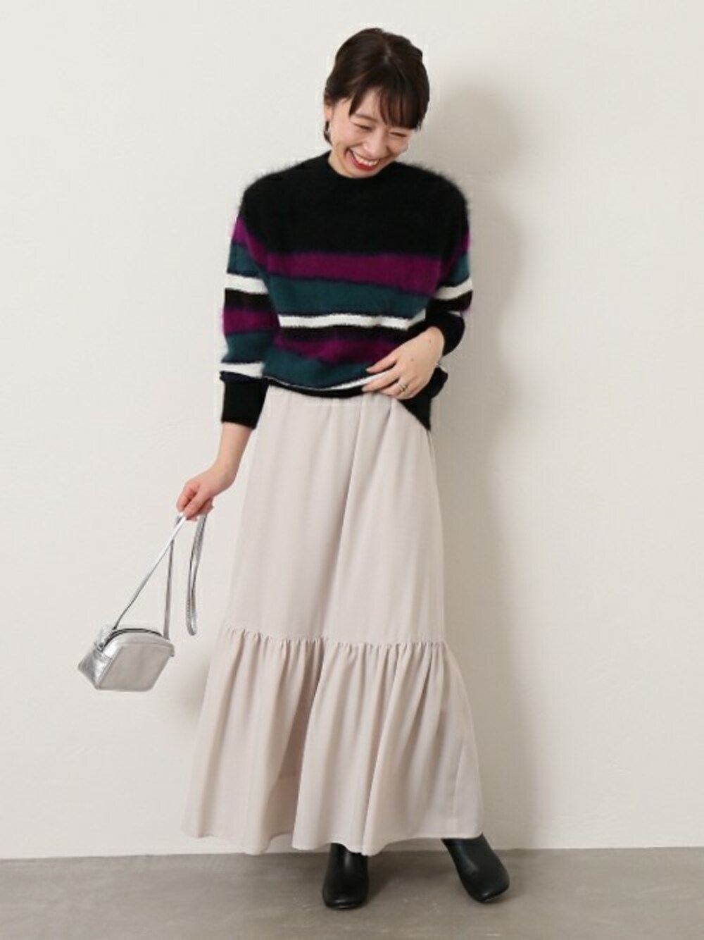 JOURNAL STANDARD 本社スタッフBのスカート「【OKIRAKU/オキラクxL’ESSAGE 】ティアードスカート」を使ったコーディネート