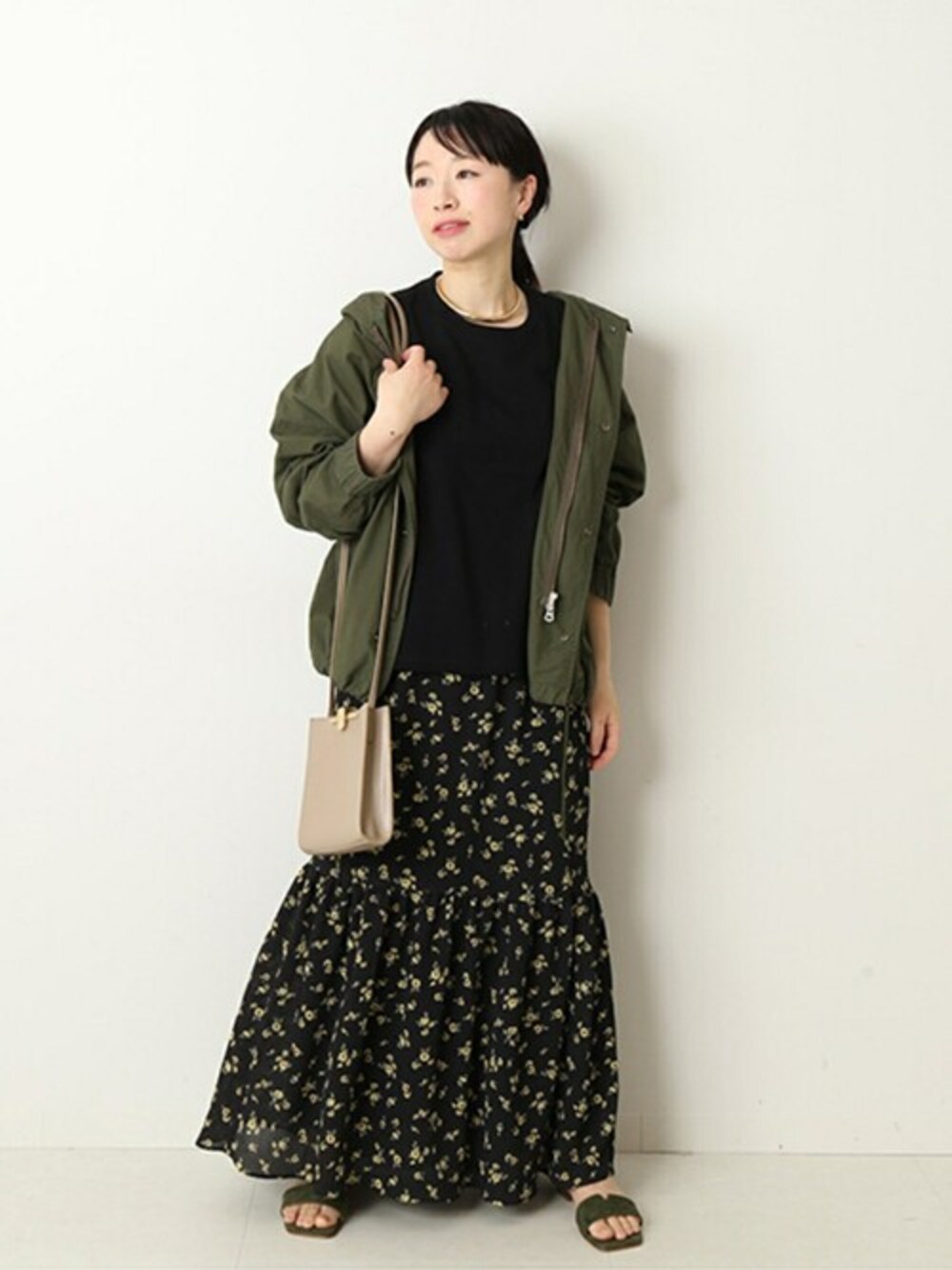 JOURNAL STANDARD 本社スタッフBのスカート「ヨウリュウシフォンプリントスカート◆」を使ったコーディネート