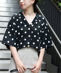 ◆レーヨン麻ドットショートシャツ ブラックxホワイトのドットが目を引く麻混素材の七分袖シャツ。 開襟シャツが旬な印象ながらドット柄で大人っぽさをプラス。 半端袖がすっきりと見せてくれて二の腕をしっかりカバー◎ 1枚着でも羽織としてもお使い頂けるアイテムです。 3個のフロントボタンはどれも異なるデザインに 遊び心を忘れずお洒落にこだわったシャツです。 ※同素材で《予約》レーヨン麻オープンカラーシャツワンピース(品番:22040370020020)もございます。 ********************** 透け感:なし 裏地:なし 伸縮性:なし 光沢感:なし 生地の厚さ:普通 **********************