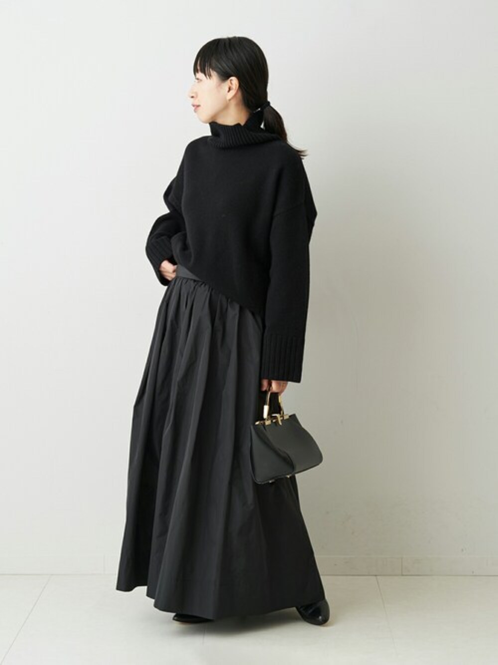 シンプルで着回しの効くタートルニットが登場 毛100%の素材で暖かく冬までに重宝する一枚。 ゆったりとしたサイズ感なので身体のラインを拾わずストレスなく着て頂けます。 袖やネック周りもゆったりしているのもポイント。 ネックまわりはタートルをクシュっとさせて着ていただくのがおすすめです。 ********************** 透け感:なし 裏地:なし 伸縮性:ややあり 光沢感:なし 生地の厚さ:普通 **********************