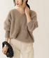 柔らかいふわっとした肌触りが魅力的なフォックスカシミヤ素材。 女性らしい柔らかい素材感で1枚で着映えする軽くて暖かいニット。 1枚でさらっと着るのも大人っぽく上品に仕上がって素敵。 ゆとりもありシャツやカットソーとのレイヤードも楽しめます。 ********************** 透け感:なし 裏地:なし 伸縮性:あり 光沢感:なし 生地の厚さ:普通 **********************