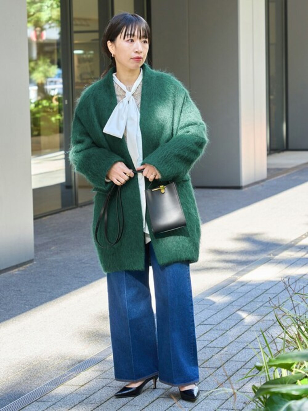 JOURNAL STANDARD 本社スタッフBのノーカラーコート「コクーンミドルコート2」を使ったコーディネート