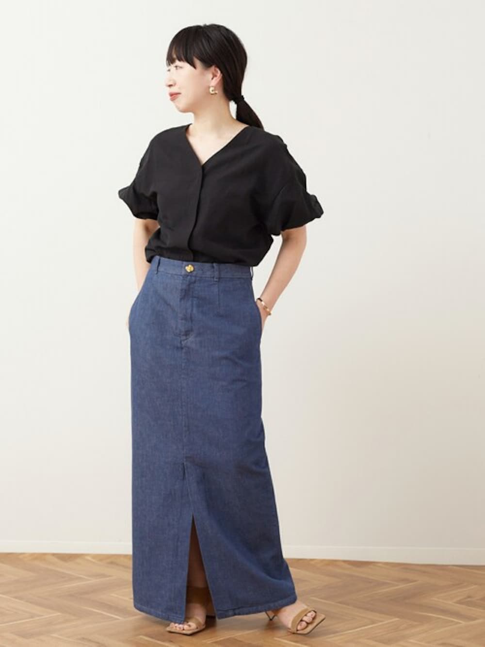 JOURNAL STANDARD 本社スタッフBのシャツ/ブラウス「《追加》ヴィスリネンVネックブラウス」を使ったコーディネート