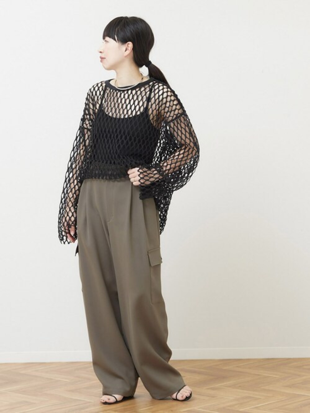 ◆ダブルツイルカーゴパンツ 上品な雰囲気の落ち感素材のカーゴパンツ。 ゆったりとしたシルエットが程よくヌケ感をプラス。 カジュアルテイストなカーゴパンツもキレイ見えなら大人の女性も取り入れやすく トップスはシャツやブラウスはもちろん、Tシャツ合わせもカジュアルになりすぎず洗練された雰囲気に。 裾をボタンで絞るとシルエットに変化が付いてまた違った雰囲気になります。 ********************** 透け感:なし 裏地:なし 伸縮性:なし 光沢感:なし 生地の厚さ:普通 **********************