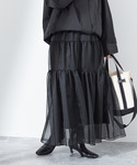 ◆オーガンジーティアードスカート オーガンジー特有の軽やかさとふわっとしたシルエットが魅力的なティアードスカート。 見た目も穿き心地も春らしい気分にしてくれ、ボトムスから春を取り入れるのにぴったりです。 スニーカーと合わせて、軽やかに穿きこなせばお出かけ気分も盛り上がること間違いなし。 もちろん、シーズンレスで活躍するスカートなので、ざっくりしたニットとブーツで合わせて素敵。 ********************** 透け感:あり 裏地:あり 伸縮性:なし 光沢感:ややあり 生地の厚さ:薄手 **********************
