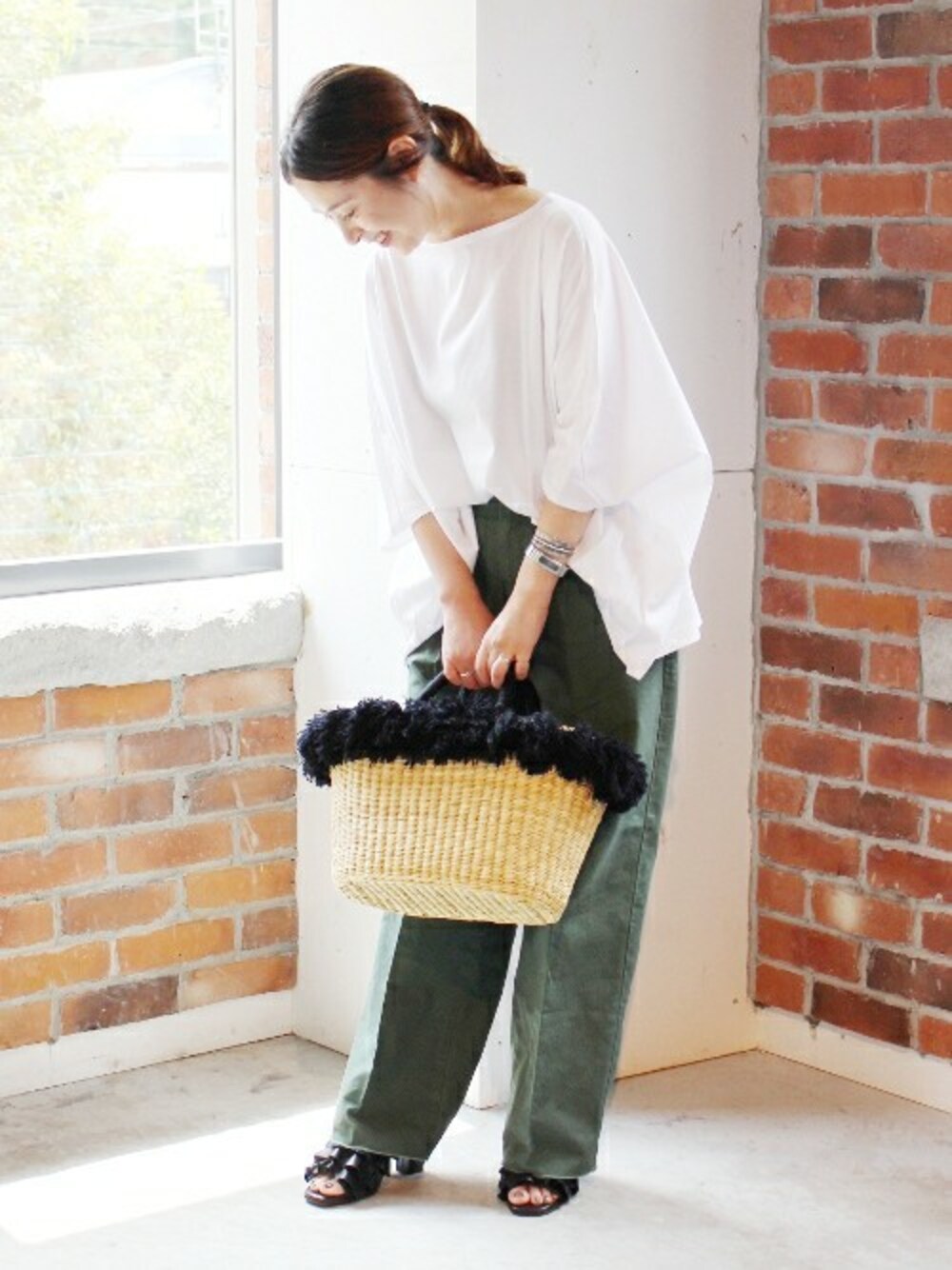 ◆TWWカットソー 今年らしいゆったりとしたボートネックのデザインで旬顔に。 フロントをインしてパンツをハイウエストで履きこなしていただくのもおすすめです。