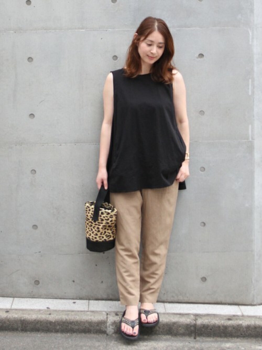 キチンと感のある大人コーデ Aライントップスで落ち感の綺麗なシルエットに。 ラクチンなのにすっきりと大人っぽく着られるスタイルです!