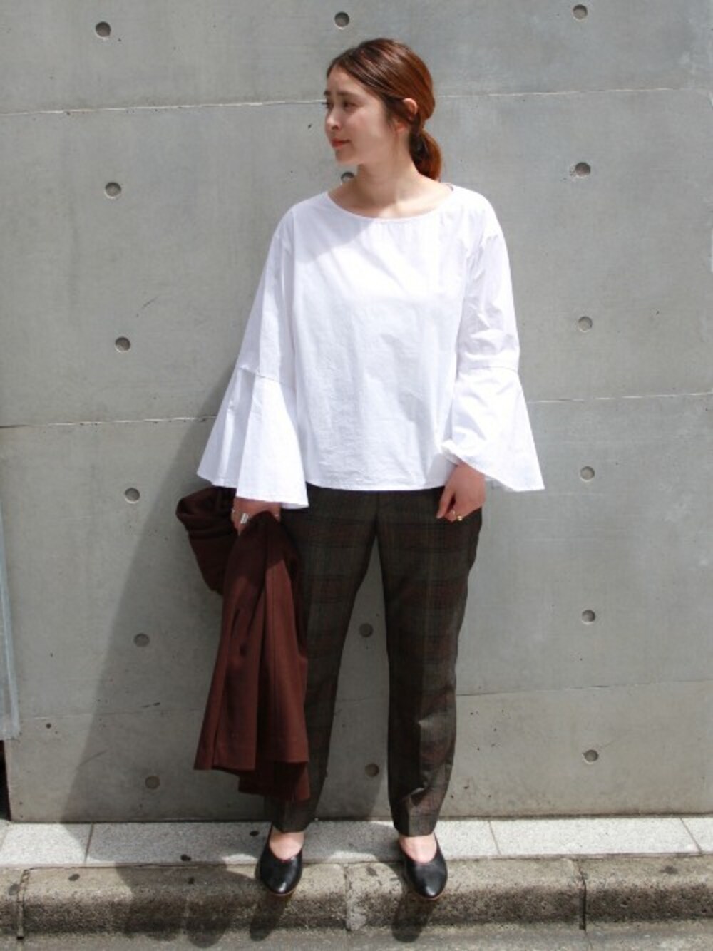 ◆タイプライターフレアソデブラウス 張り感のある生地が上品で甘すぎない雰囲気に見せてくれるブラウス。今の時期から秋まで着まわせて一枚で様になるデザインブラウスは一枚持っていたいアイテムです!