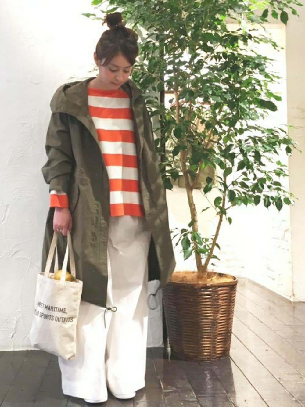 ジャーナルスタンダードが提案する、マリン×アウトドアMIXスタイル! モッズコートに、ビビットなオレンジがポイントのボーダーを合わせて、かっちりしない適度なゆるさをMIXさせたスタイリング。 ボリューム感のあるボトムを合わせることで、リラックス感をプラスしました。