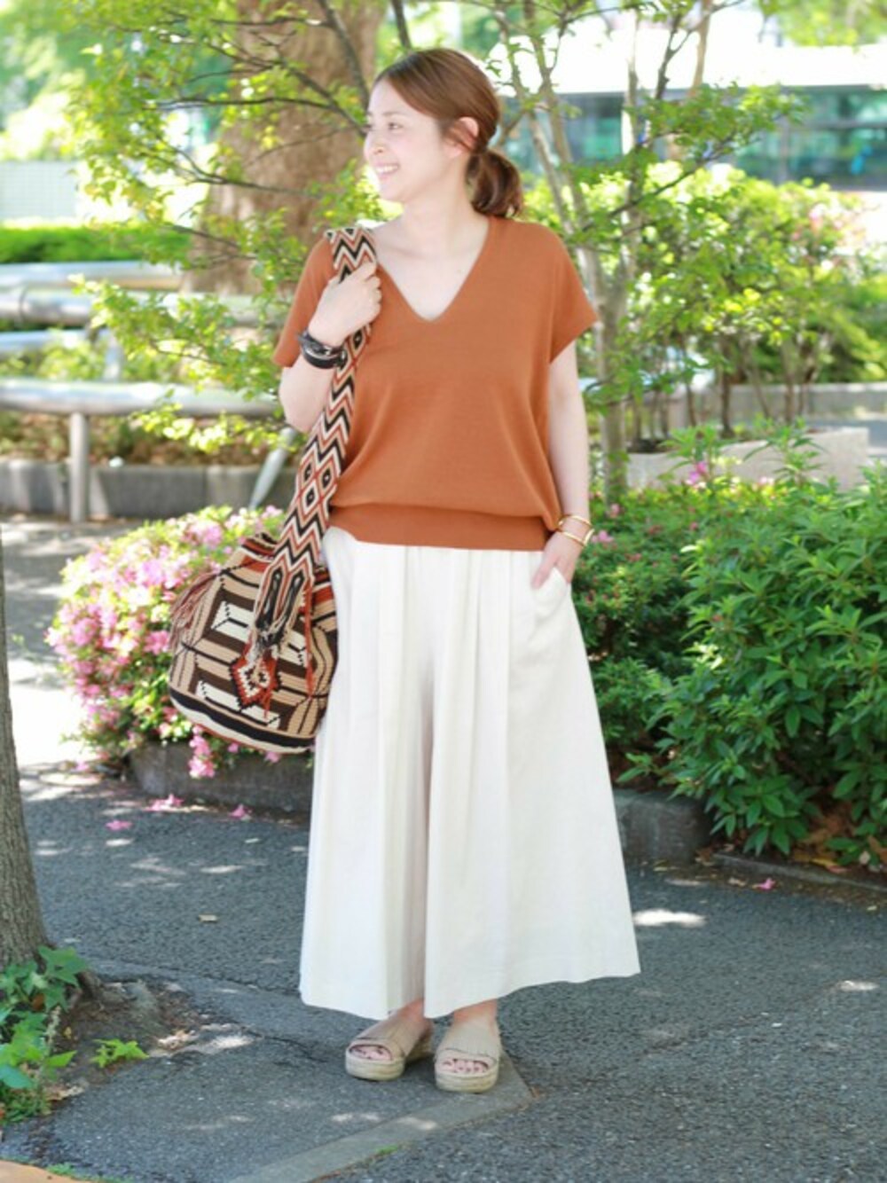 etsukoのニット/セーター「ハイツイストコットン Vショールフレンチプルオーバー#」を使ったコーディネート