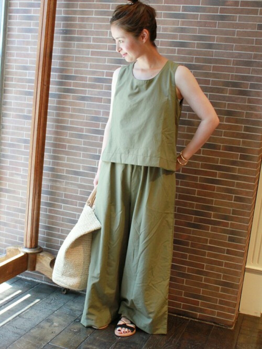 今年の着こなしには欠かせないアイテム。 一見トップスとパンツのセパレートのようですが、一枚で着れるサロペット。 チューブトップやキャミソールと重ねて夏にかけて活躍致します。