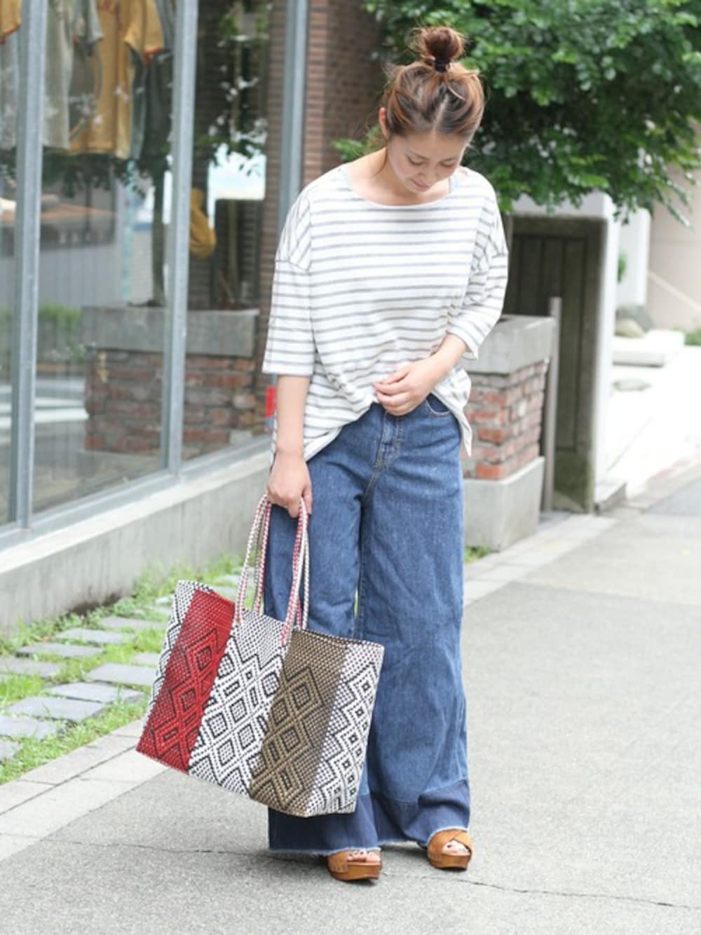 etsukoのTシャツ/カットソー「テンジクボーダー ボートネックワイド5分袖プルオーバー# 」を使ったコーディネート