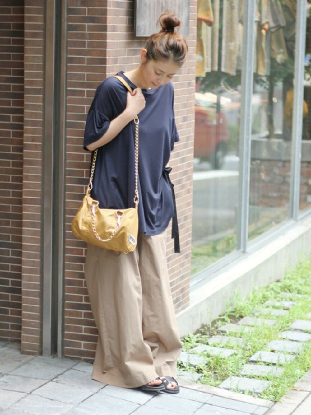 しなやかな落ち感が魅力なTシャツ。 光沢感のある生地がどこか綺麗な雰囲気で、カジュアルダウンしすぎません。 サイドはサークル型にギャザーを寄せ、アクセントに◎ 今年旬なワイドパンツとも相性よく着ていただけます!