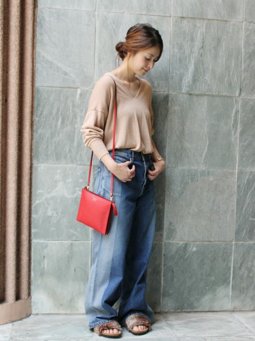 etsukoのニット/セーター「綿VIS×SILK Vショールプルオーバー#」を使ったコーディネート