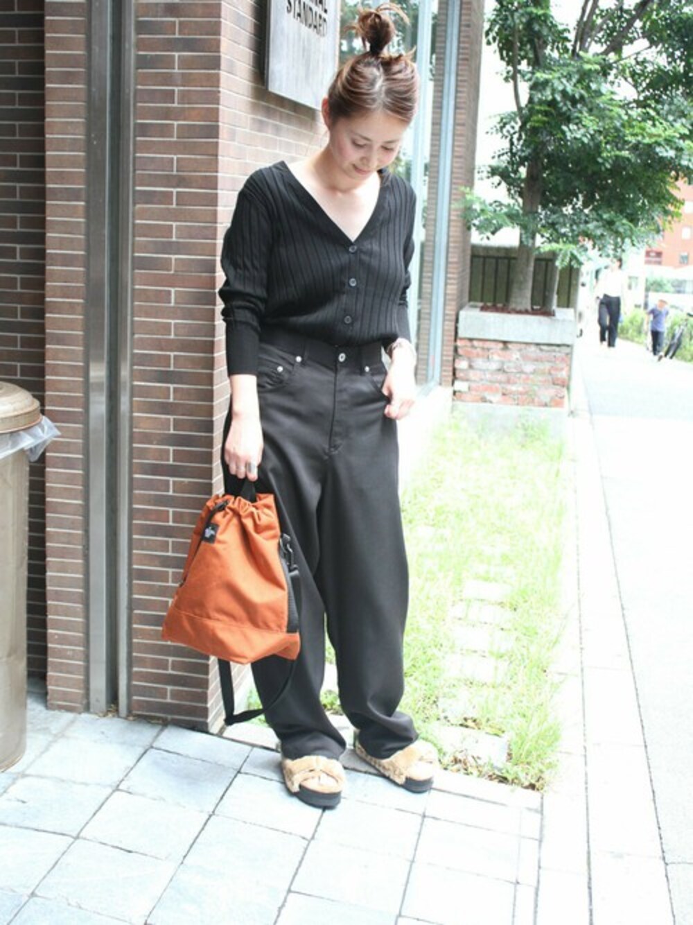 etsukoのカーディガン/ボレロ「VISワイドリブ Vネックカーディガン#」を使ったコーディネート