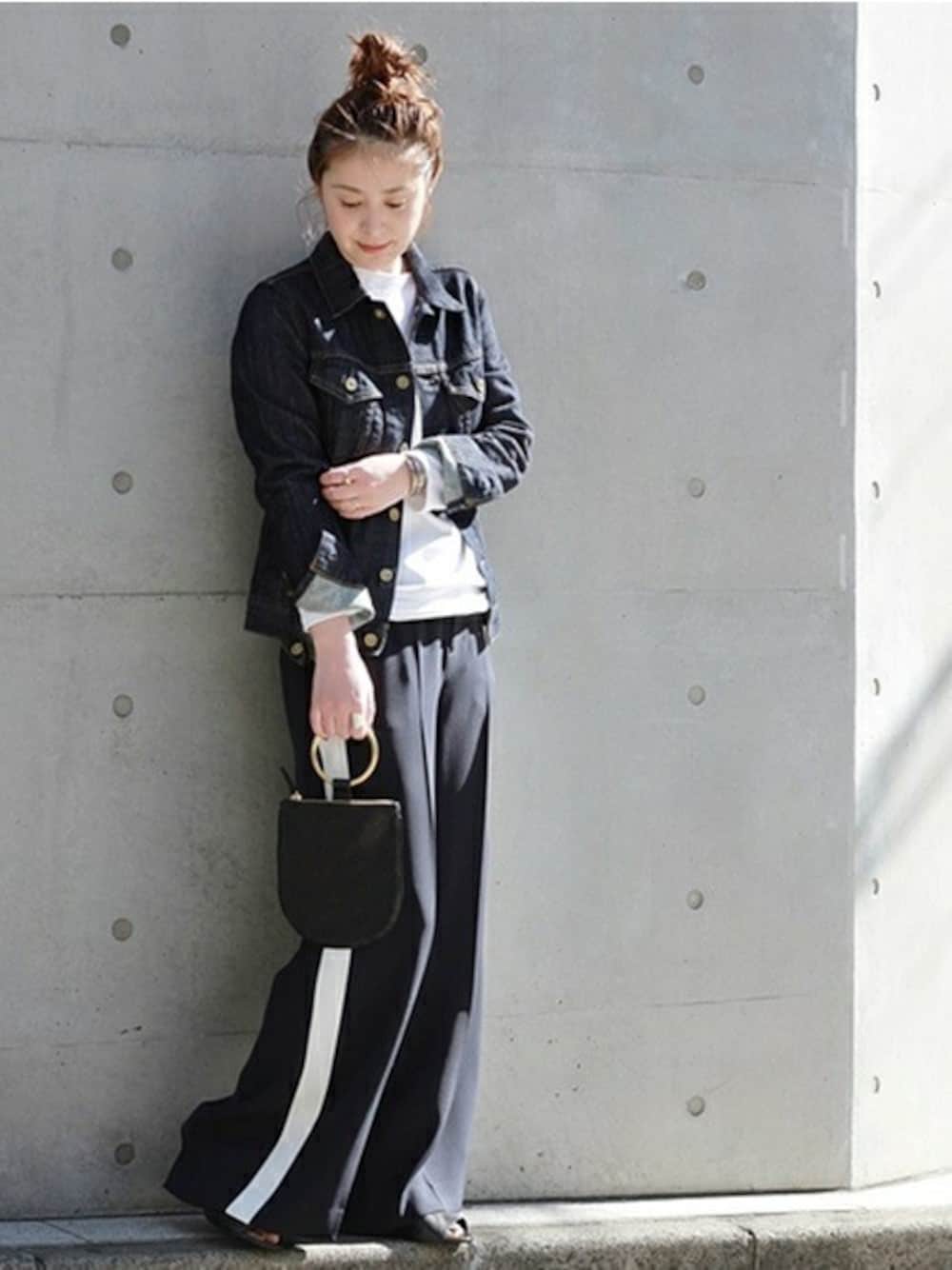全体をダークトーンでまとめたスタイル。シルエットのきれいなデニムがポイントです。カジュアルになり過ぎない大人な雰囲気に仕上げました!