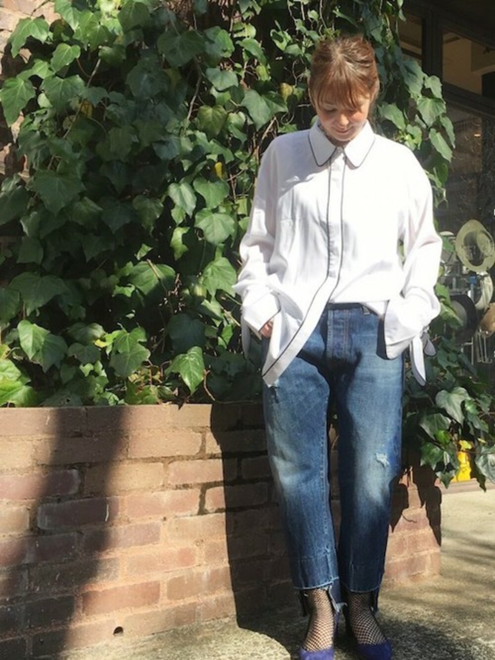 ◆トレンドのパジャマシャツ シャツのデザインバリエーションが豊富な今シーズン。 PAJAMAシャツでシンプルに着こなすのもおすすめ。 黒のパイピングと袖のデザインがポイントです。