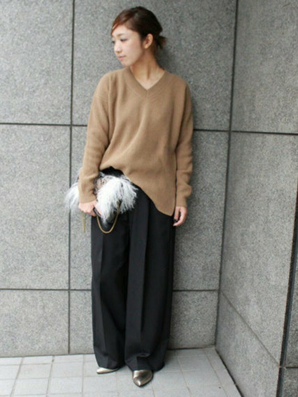 yu(JOURNAL STANDARD Lady's 本社 )のトップス「roberto collina Big V ネック knit」を使ったコーディネート
