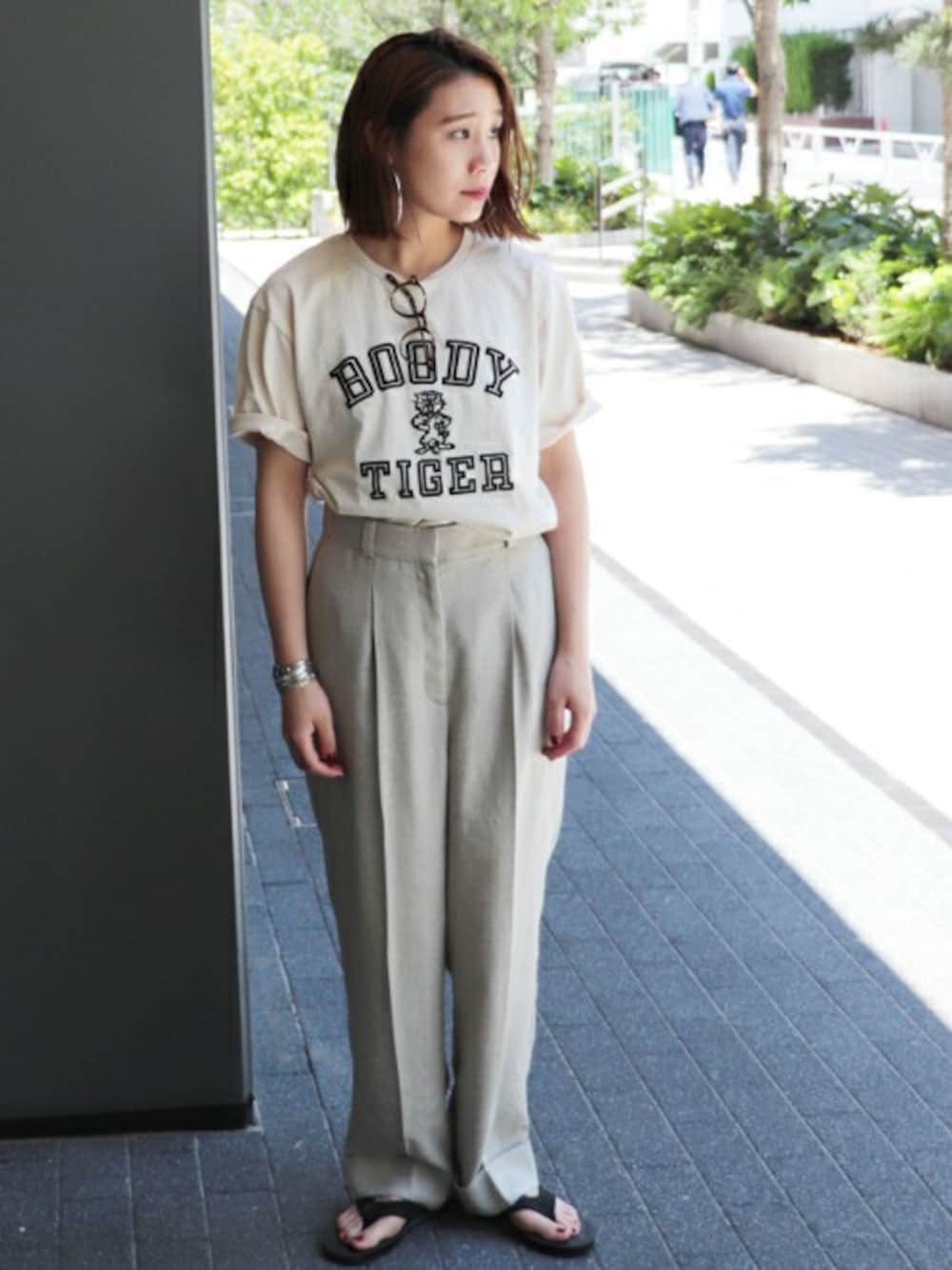 ◆Mixtaより、ヴィンテージライクなTシャツが登場!ホワイト×ベージュでトーンを合わせたスタイリング◎
