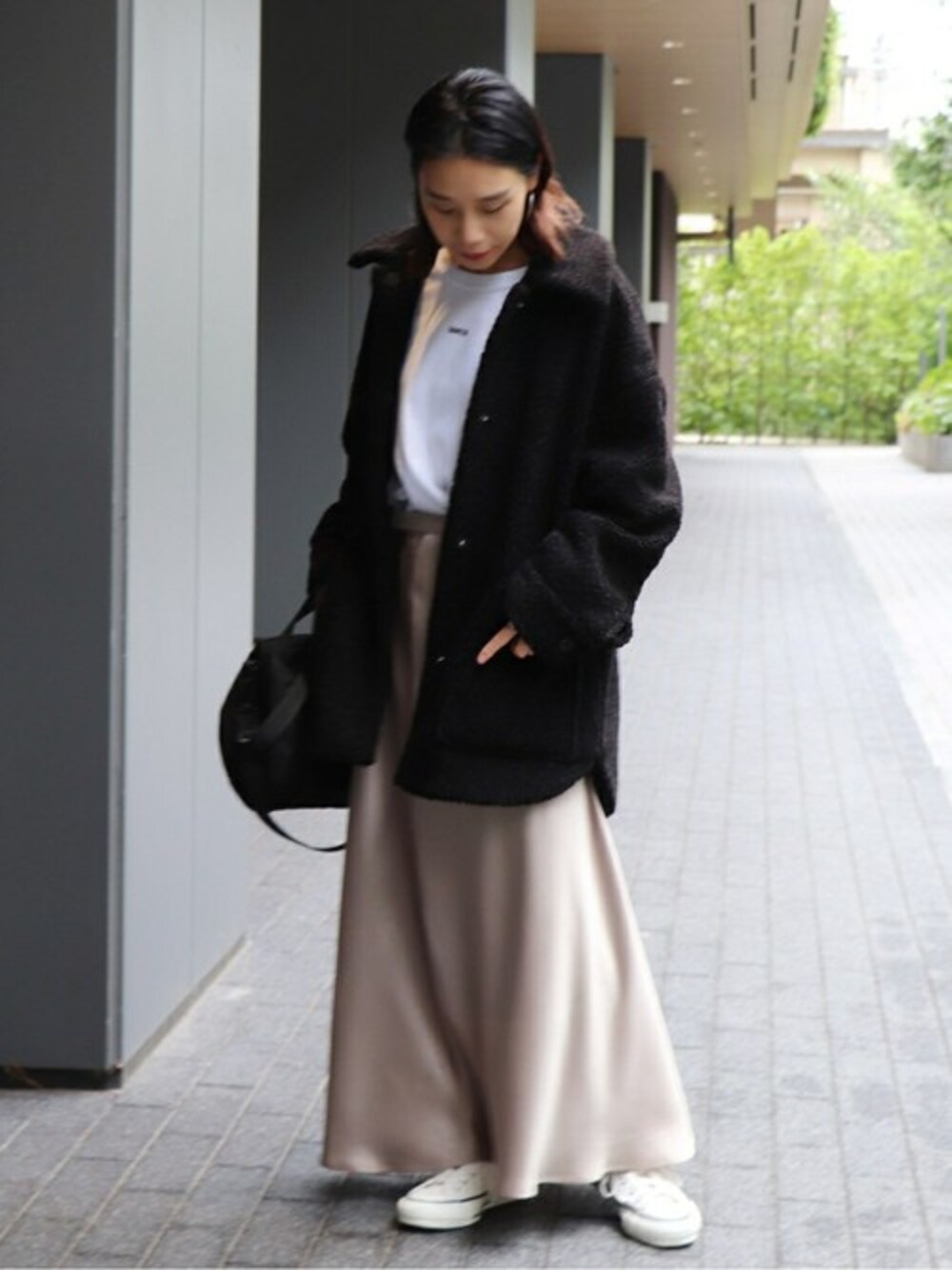 ECOPELボアブルゾン◆ サイズ感:ややゆったりめで、腰周りが少し隠れるくらいの着丈です。 素材感:肌触りがよく、ちょうど良いモコモコ感です。 着心地:見た目よりも重くなく、軽い着心地です。
