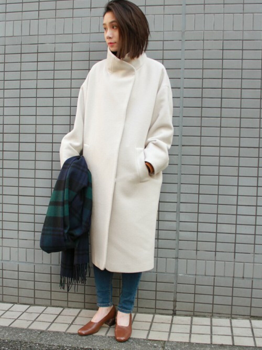 HATAYAMAのその他アウター「《追加》ソフトモッサ スタンドカラーコート#」を使ったコーディネート