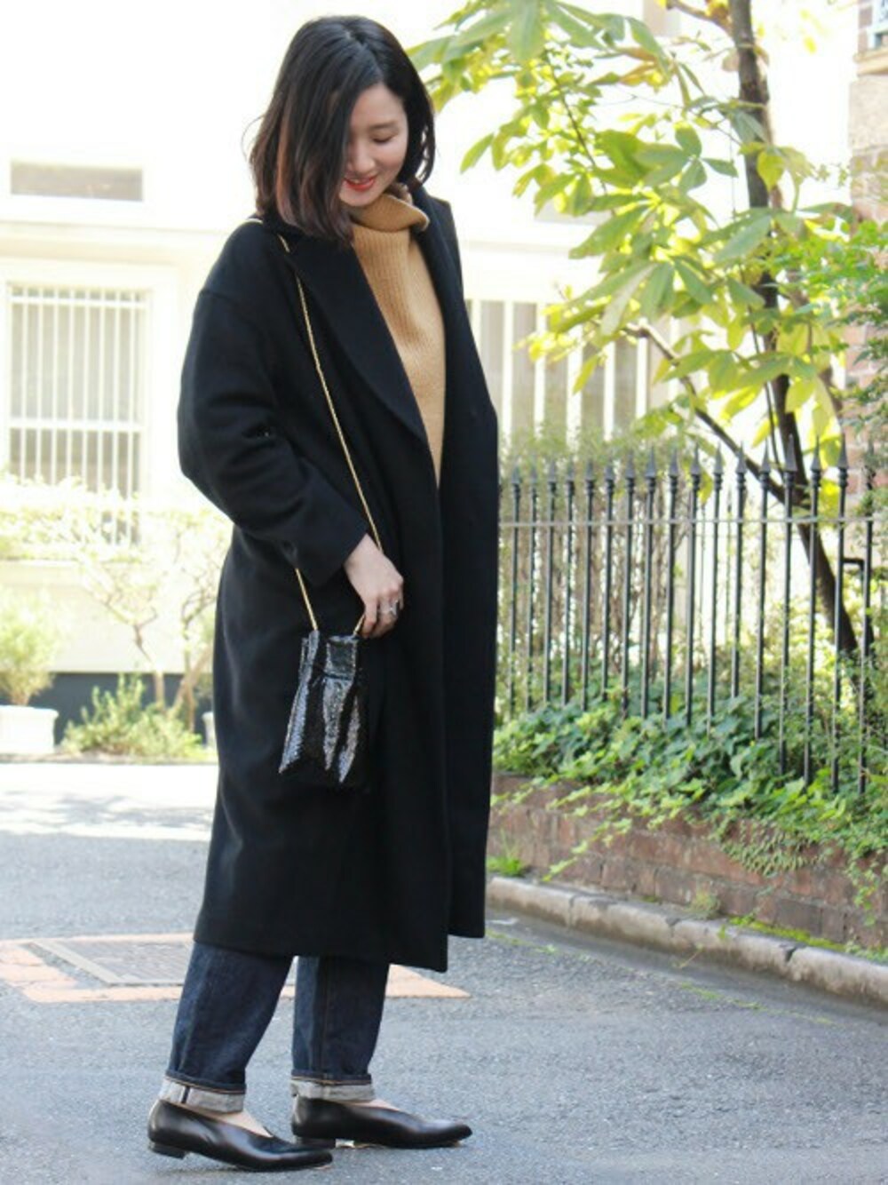 緩めのタートルネックをざっくりとしたコートに合わせて大人にスタイリングしました。