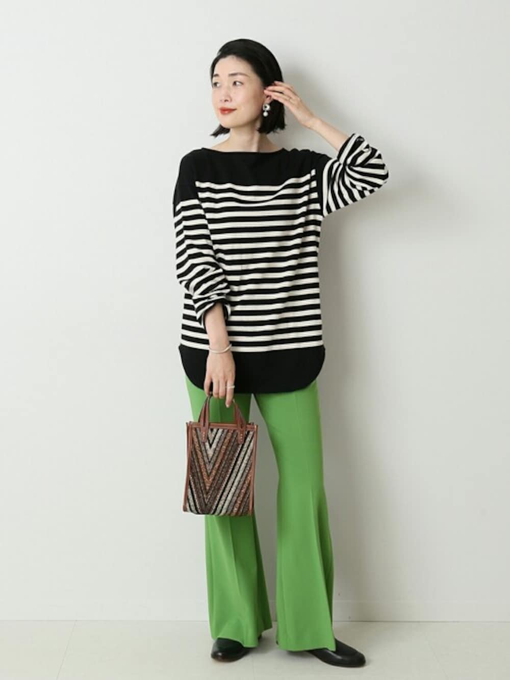 ◆着回しの効くオーバーサイズボーダーが登場 綿100%が着心地良くシーズンレスで活躍するボーダーカットソー。 身体のラインを拾わない、少しオーバーサイズが抜け感を演出してくれます。 ベーシックながらおしゃれな度がアップする一枚。 ワイドやフレア系のパンツでも、マキシスカートでも合わせやすく◎ 持っていると大活躍する便利なアイテムです。 ********************** 透け感:なし 裏地:なし 伸縮性:あり 光沢感:なし 生地の厚さ:やや厚手 **********************